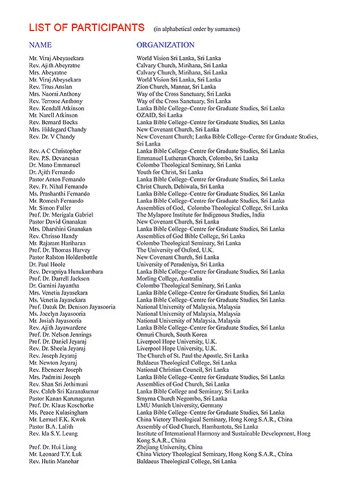 Participants include heads and representatives of non-governmental organizations from Indonesia, India, South Korea, the Philippines, Malaysia, Spain, Switzerland, Sri Lanka, and Thailand 参与者包括了来自印度尼西亚、印度、南韩、菲律宾、马来西亚、西班牙、瑞士、斯里兰卡、泰国等非政府机构负责人及學者 |