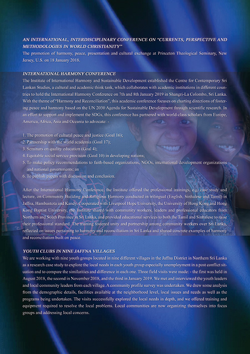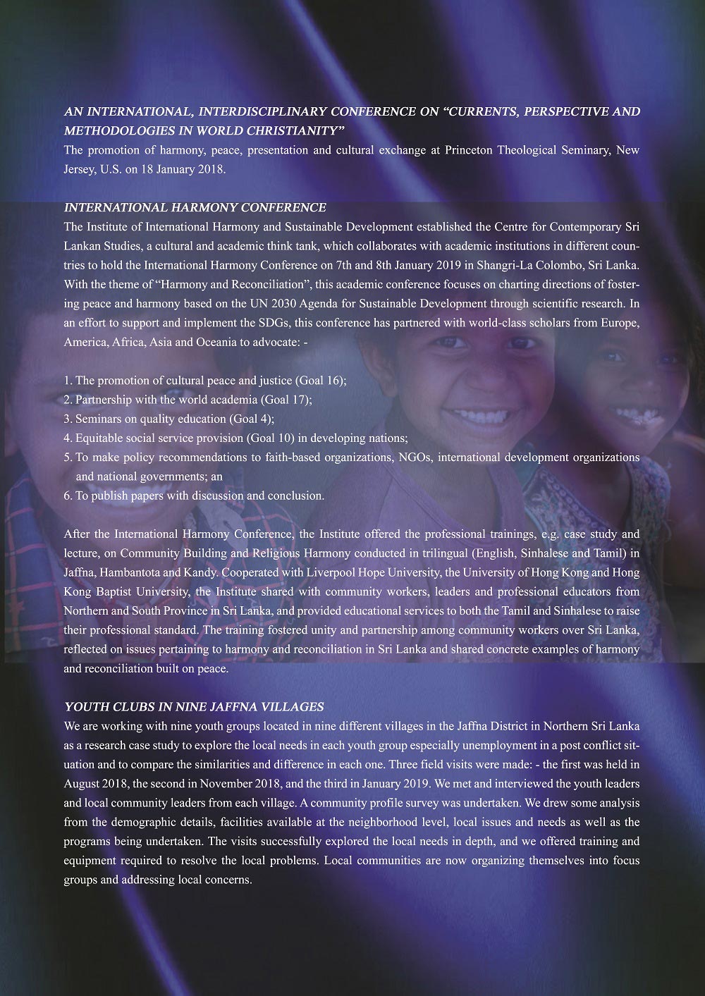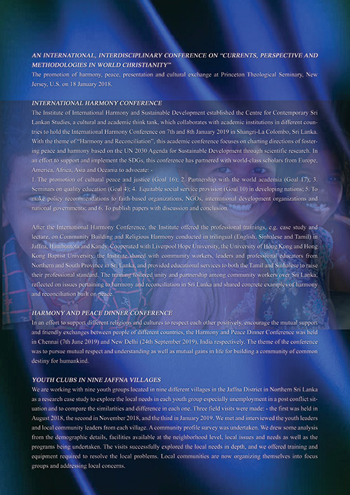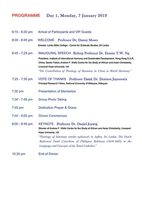 1/2019 International Harmony Conference, Sri Lanka 斯里兰卡之国际和谐文化学术会议 Photo-taking with renowned international scholars, guests and over 100 local community leaders and church leaders during the opening ceremony. 於開幕式上與各來賓、國際著名神學家及學者並參與 之一百多位當地教會領袖合照 |