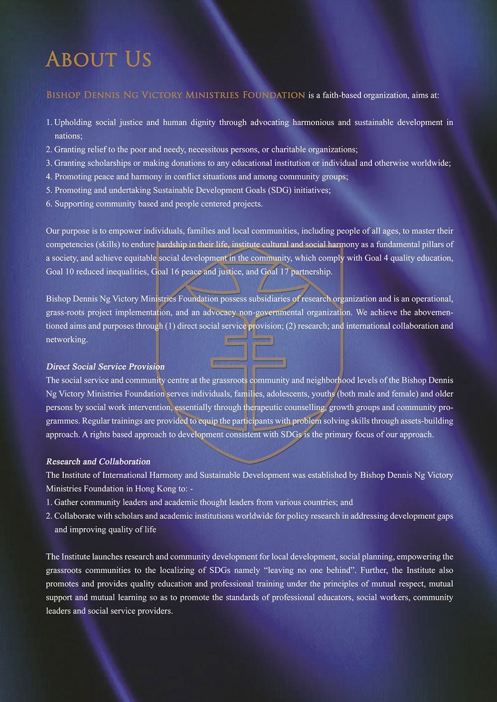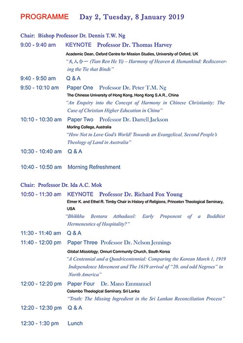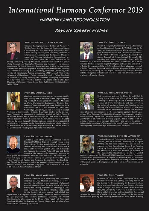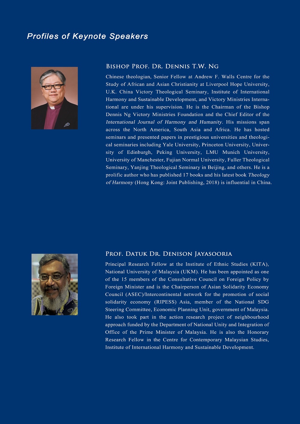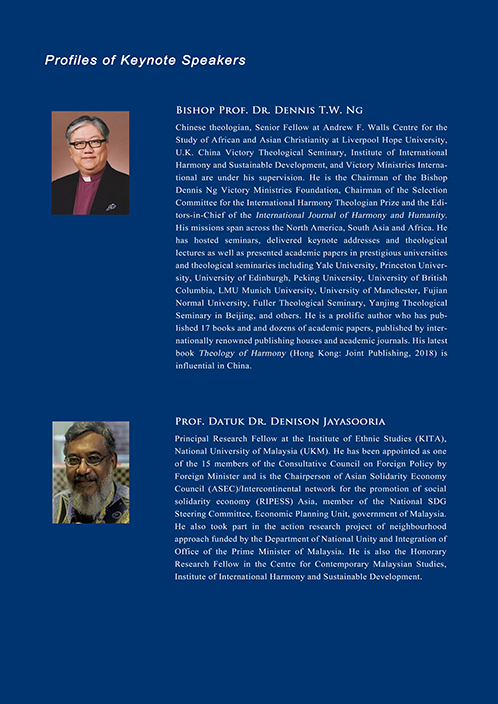Inaugural Speech by Bishop Prof. Dennis T.W. Ng〔伍德荣会督(教授)〕 "The Contribution of Theology of Harmony in China to World Harmony" |