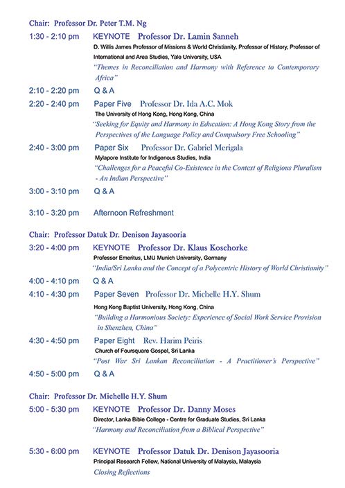 Prof. Dr. Dennis T.W. Ng led the mourning of the recently passed Yale University professor Prof. Dr. Lamin Sanneh. His keynote paper for the International Harmony Conference turned out to be his last paper and was read out at the conference. 伍德榮教授带领哀悼刚离世的美国耶鲁大学教授Prof. Dr. Lamin Sanneh,他于是次会议上的论文为生前最后一篇文章,并于会议上宣读 |