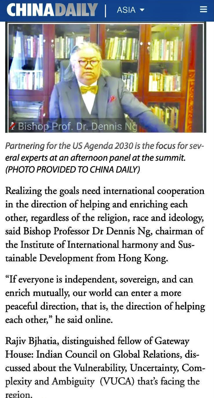Prof. Dennis Ng was one of the panelists in “Partnering for the SDG’s – Towards a Sustainable and Inclusive Society Leaving No One Behind” in 2020 Asia Economic and Entrepreneurship Summit 伍德荣教授在「2020年亚洲经济和企业家峰会」中,担任「可持续发展目标伙伴」其中一位峰会发言人。 |