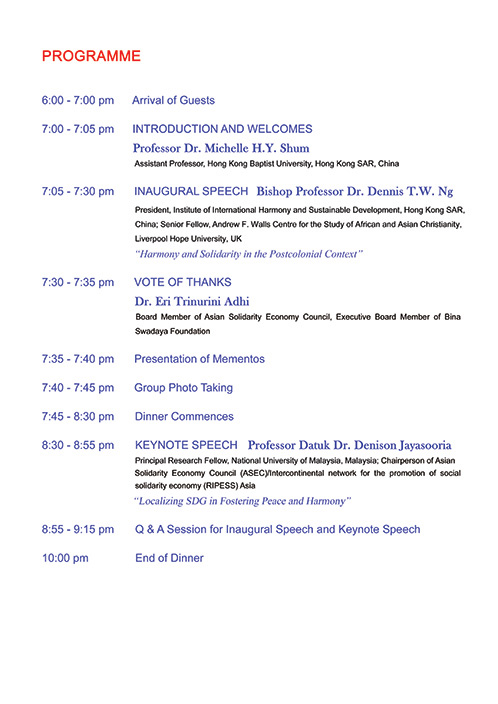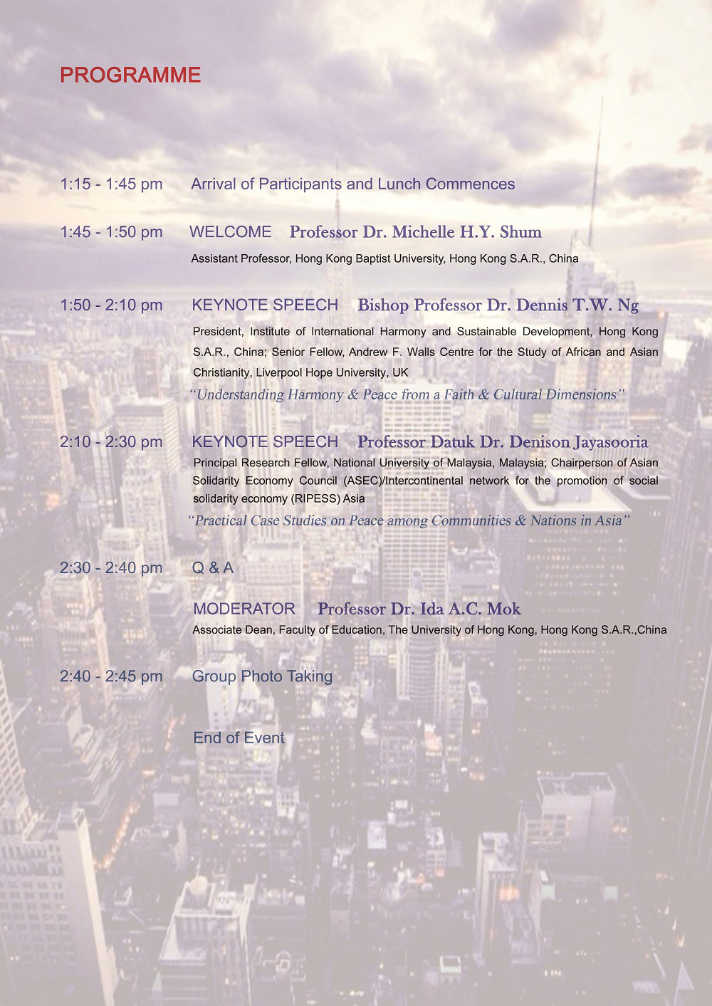 Keynote speech on the topic "Understanding Harmony & Peace from a Faith & Cultural Dimensions" 主题演讲之题目:「从信仰及文化角度理解和谐与和平」 |