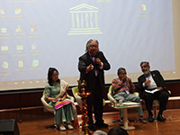 Professor Ng was one of the guests who presided over the opening ceremony of the International Conference on Indian Culture. Others included the Director of the UNESCO (second from right), Minister for Tamil Development, Tamil Culture and Archaeology (third from right), former Director of the UNESCO, India (first from right), as well as local religious and social leaders (third from left). 伍教授为印度文化国际会议上主持开幕典礼的嘉宾之一,其他包括联合国教科文总监(右二)、印度泰米尔文化部部长(右三)、前任印度联合国教科文总监(右一)、当地的宗教及社会领袖(左三) |