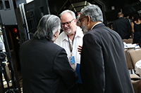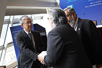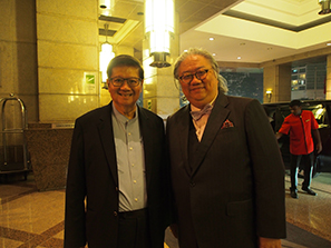 Greeting Prof. Mak Su-yin (Associate Professor in the Music Department, the Chinese University of Hong Kong) and Mr. Christopher Pak (Head of Academic Studies in Music, the Hong Kong Academy for Performing Arts) 香港中文大学音乐系副教授麦淑贤、香港演艺学院音乐学科系主任白德云 |